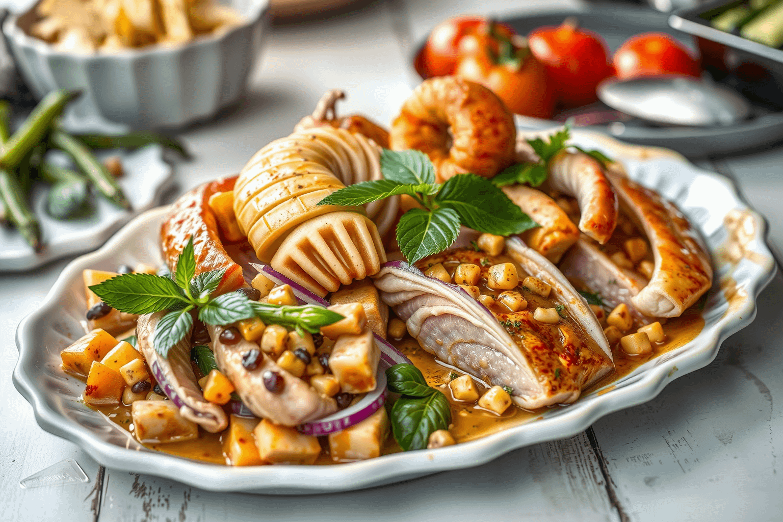 La Ensalada Extremadureña es una ensalada refrescante** ensalada refrescante** hecha con lechuga local, **pepinos**, **tomates a la plancha**, **pimientos**, espárragos blancos, **atún** y huevos duros. Esta ensalada es más ligera y fresca que las tradicionales, y se suele servir con **aceite de oliva** y **vinagre**. Es una forma perfecta de empezar la comida con un plato ligero y saludable.